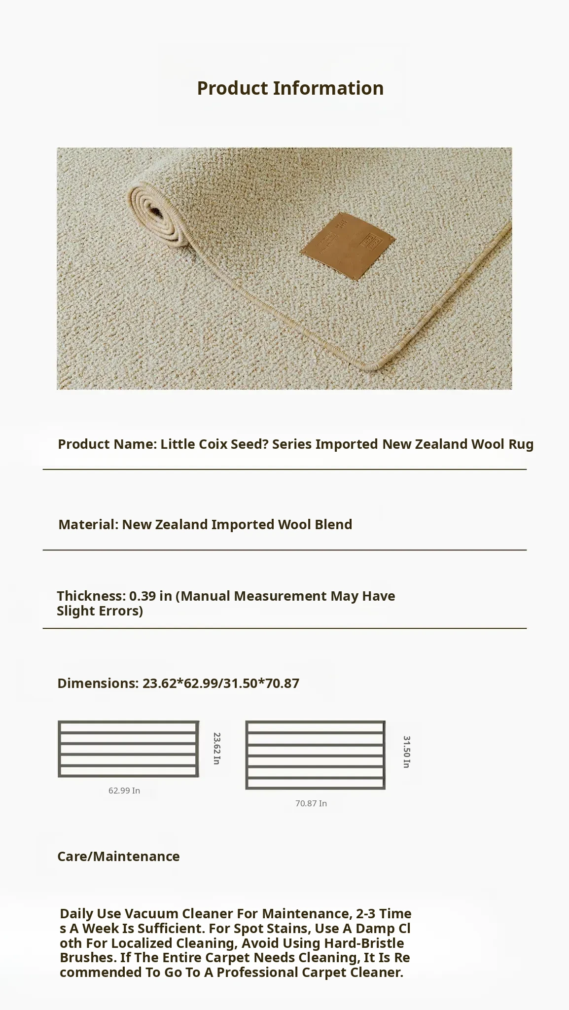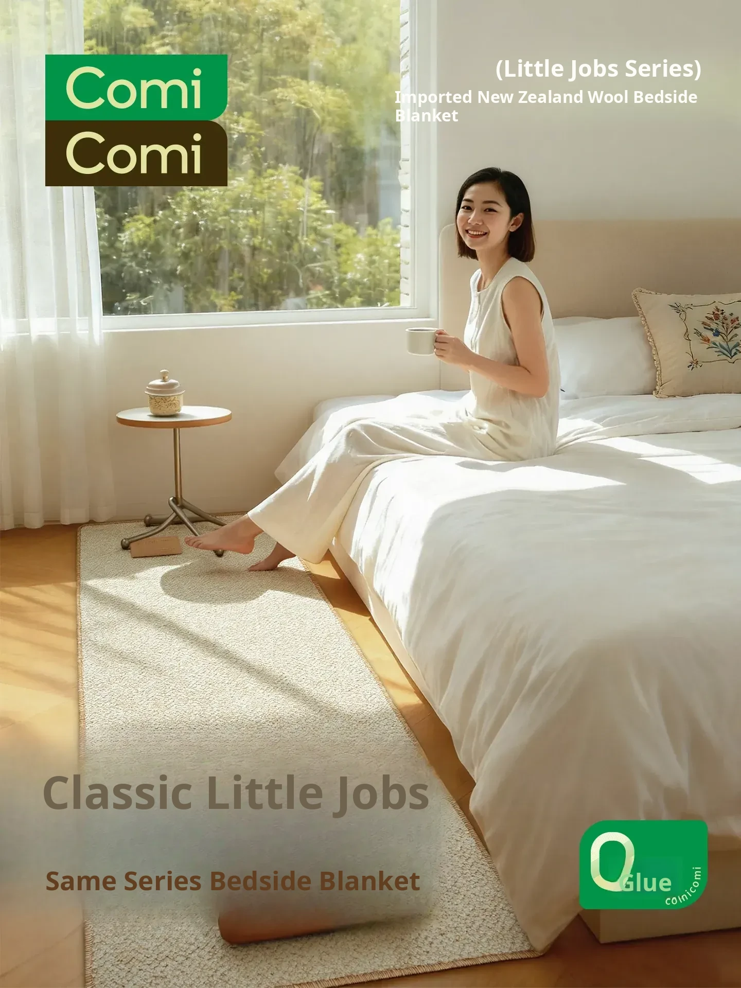 ComiComi Premium Wool Non-Adhesive Waterproof Carpet - Stylish Bedside Mat for Bedroom and Closet