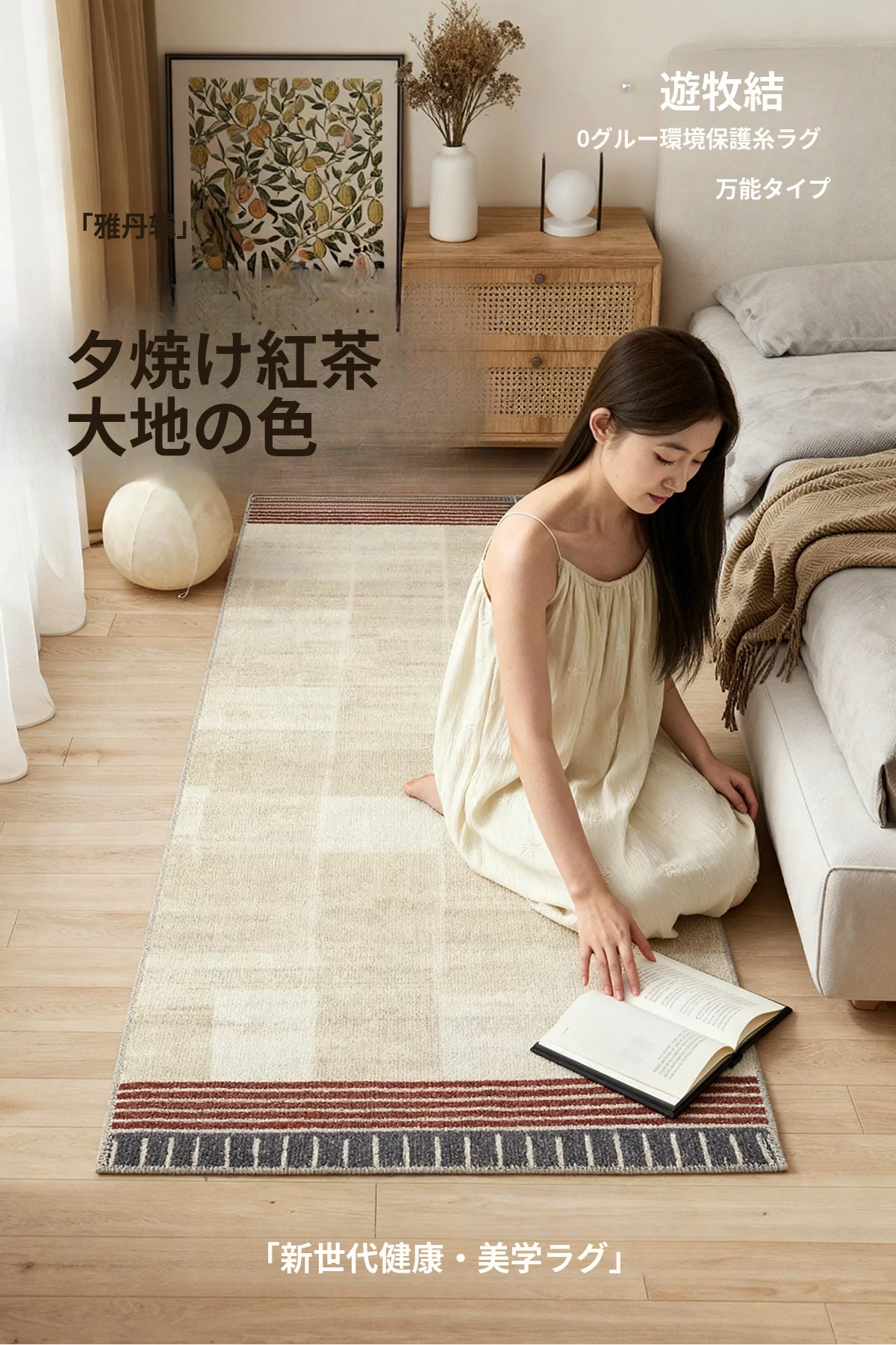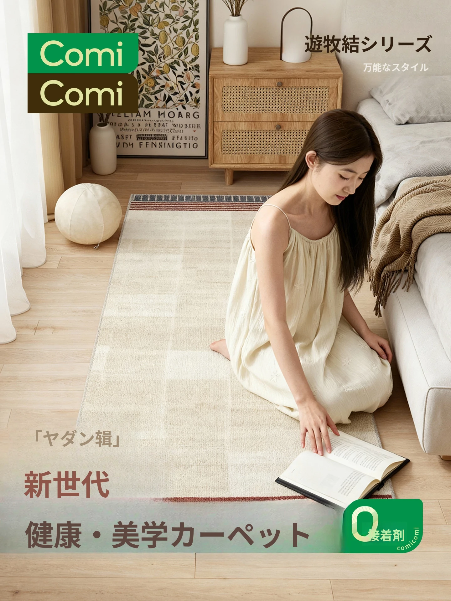 ComiComiノンアドヒーシブ防水モダンデザインラグ - 高級感あふれる寝室やクローゼットにぴったりな遊牧スタイルのカーペット!寝室のベッドサイドに最適で、快適さとスタイルを両立。